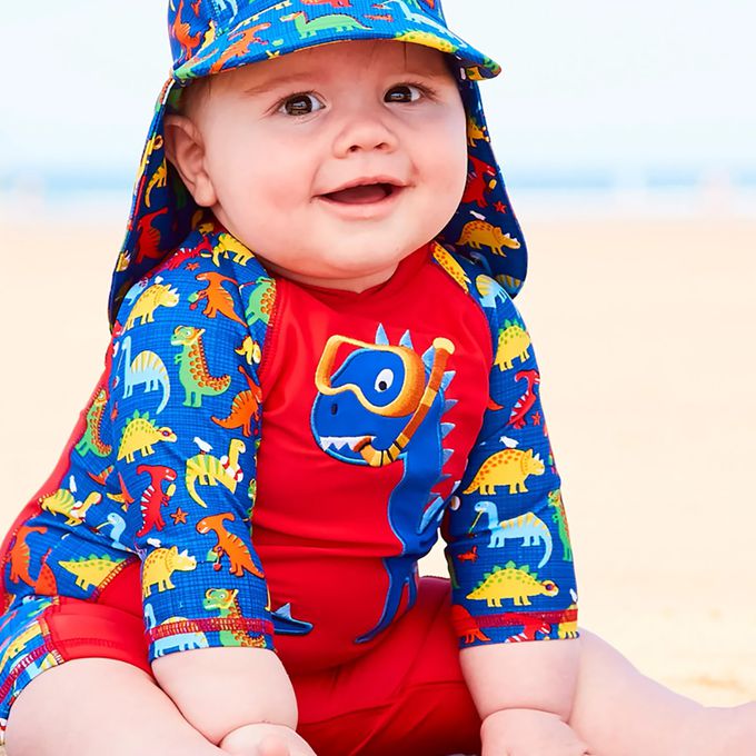 ※ 連身式能避免海水將衣服掀起,遮住寶寶的臉