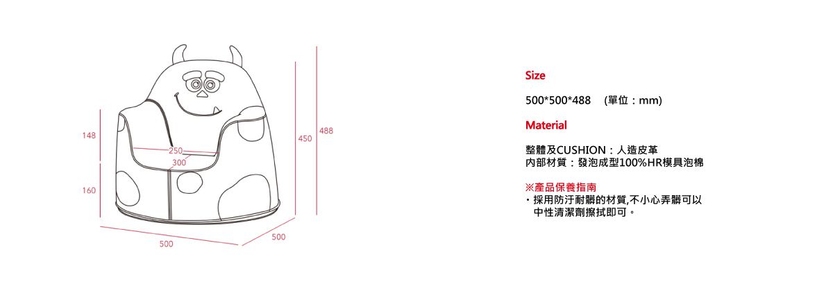 超可愛的布料材質耳朵、小尾巴(依造型而有不同),增加小沙發的層次感,完全吸引孩子的目光~精細車線超~牢固!不管怎麼揉捏都不怕它們會分離