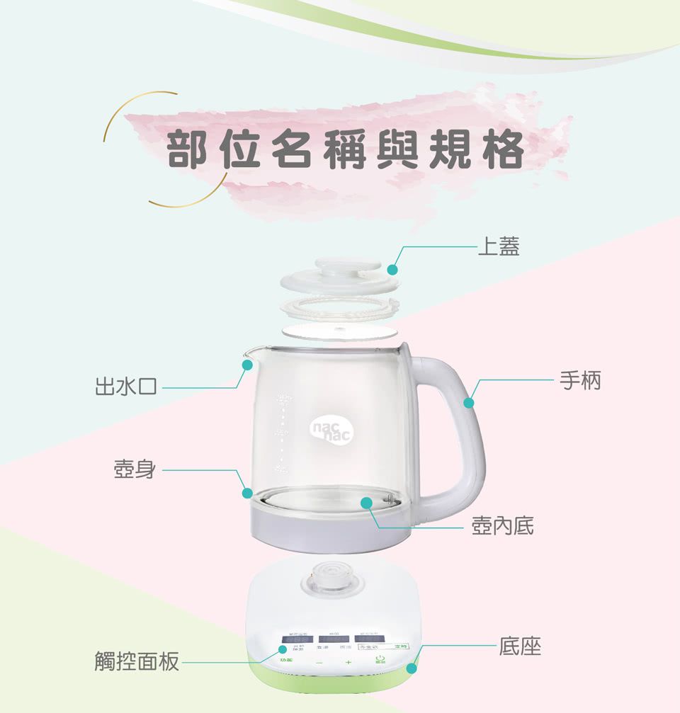 瓶身用耐熱玻璃配上亮白色塑膠的手把、搭配基座是用類玻璃烤漆加上觸控式的數位面板,整個質感就是完完全全不一樣!