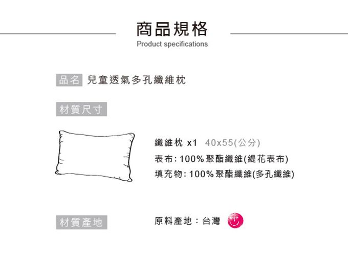內容物:防蹣抗菌枕套 1件、透氣纖維枕芯 1個