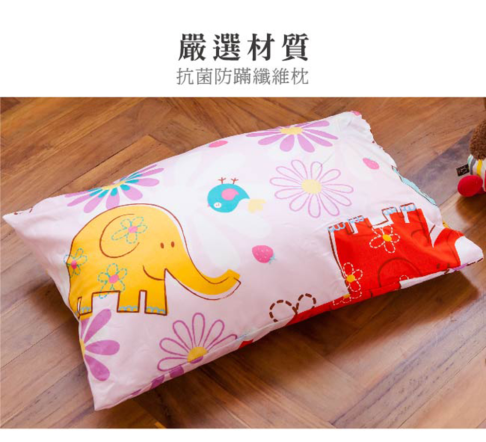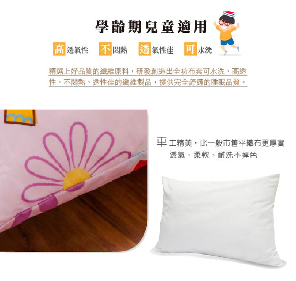 纖維枕蓬鬆柔軟,能夠完整包覆孩子的頭部,舒適安穩超好睡!