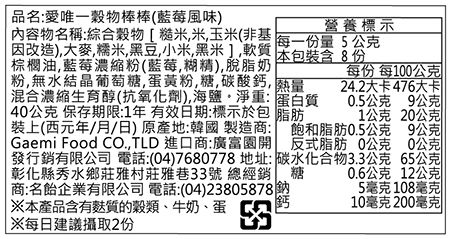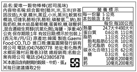專門為九個月以上寶寶設計的穀物棒!嚴選7種韓國産無農藥穀物(糙米,白米,大麥,糯米,黑豆,高粱,黑米)製成,不含任何人工調味料!