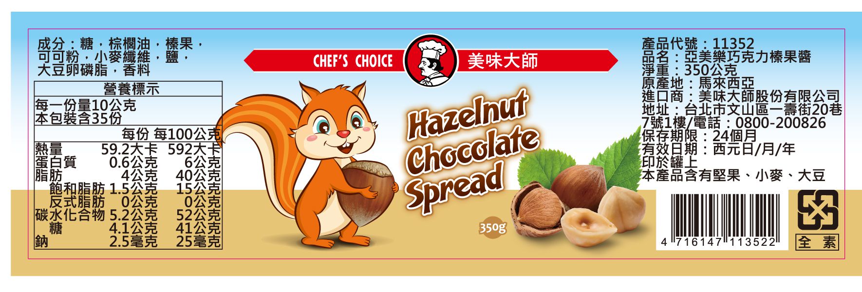 濃郁榛果融合香醇巧克力,絲柔滑順又香甜的巧克力抹醬是早餐或是下午茶的好幫手!