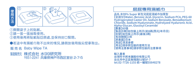 加厚型設計、純水99%、添加水解玻尿酸保濕成分