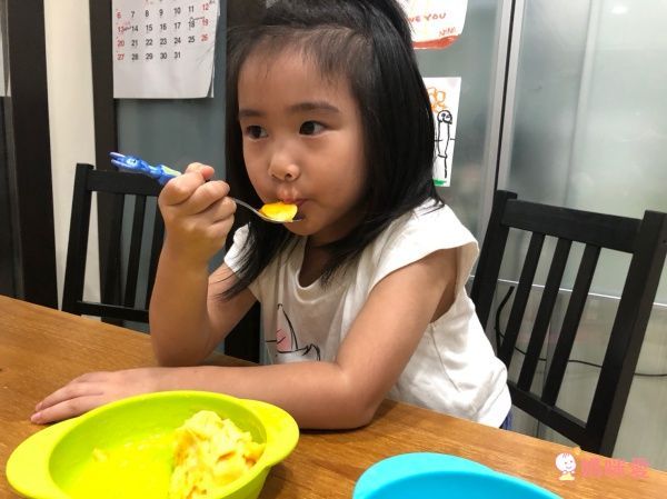 接下來是霓霓媽推薦的香蕉口味,吃起來很香很滑順,不喜歡吃水果的小朋友也能輕易入口了!