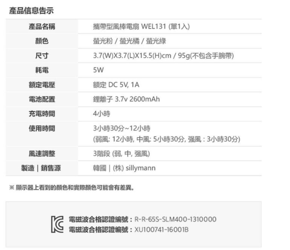 品名:攜帶型風棒電扇