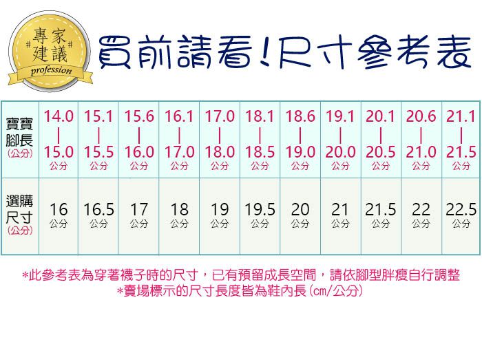 此款鞋底標示為歐規尺碼,鞋內長公分數約略如下: