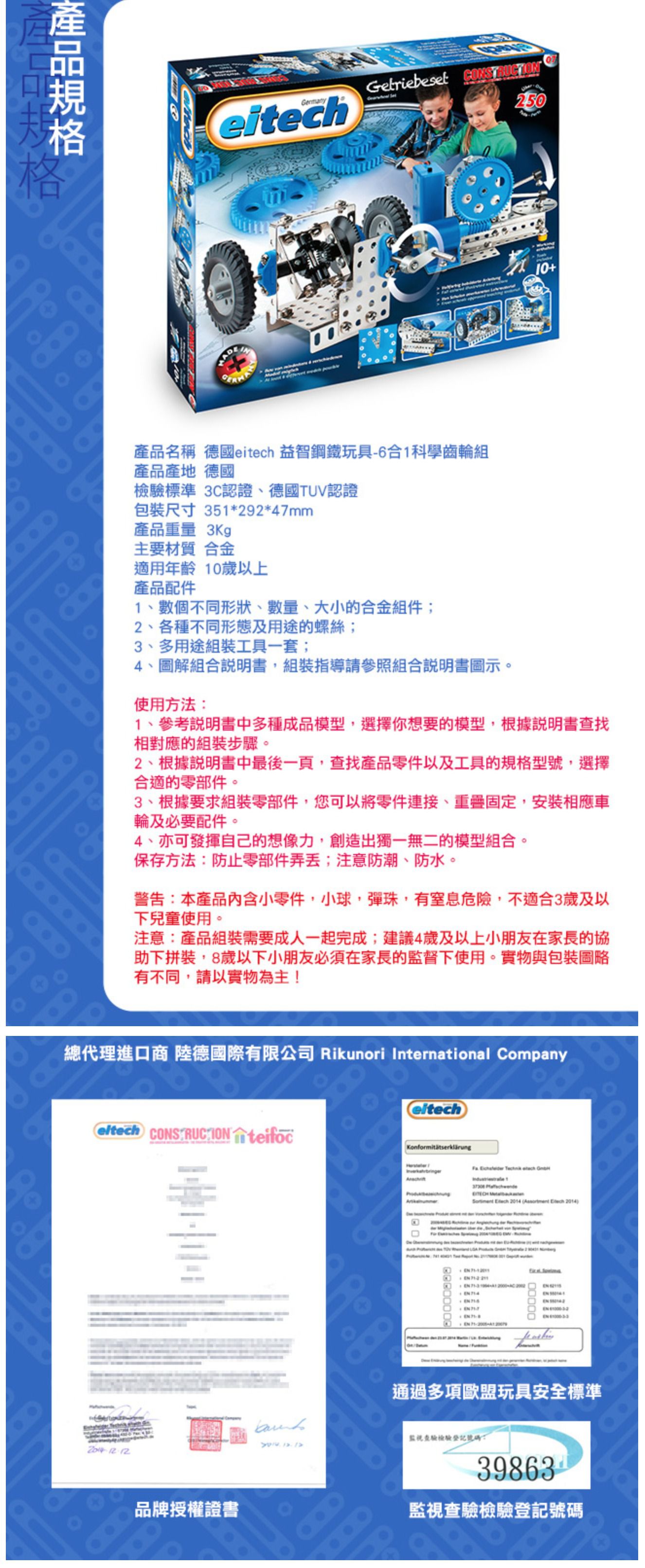 德國 eitech - 益智鋼鐵玩具-6合1科學齒輪組 C07