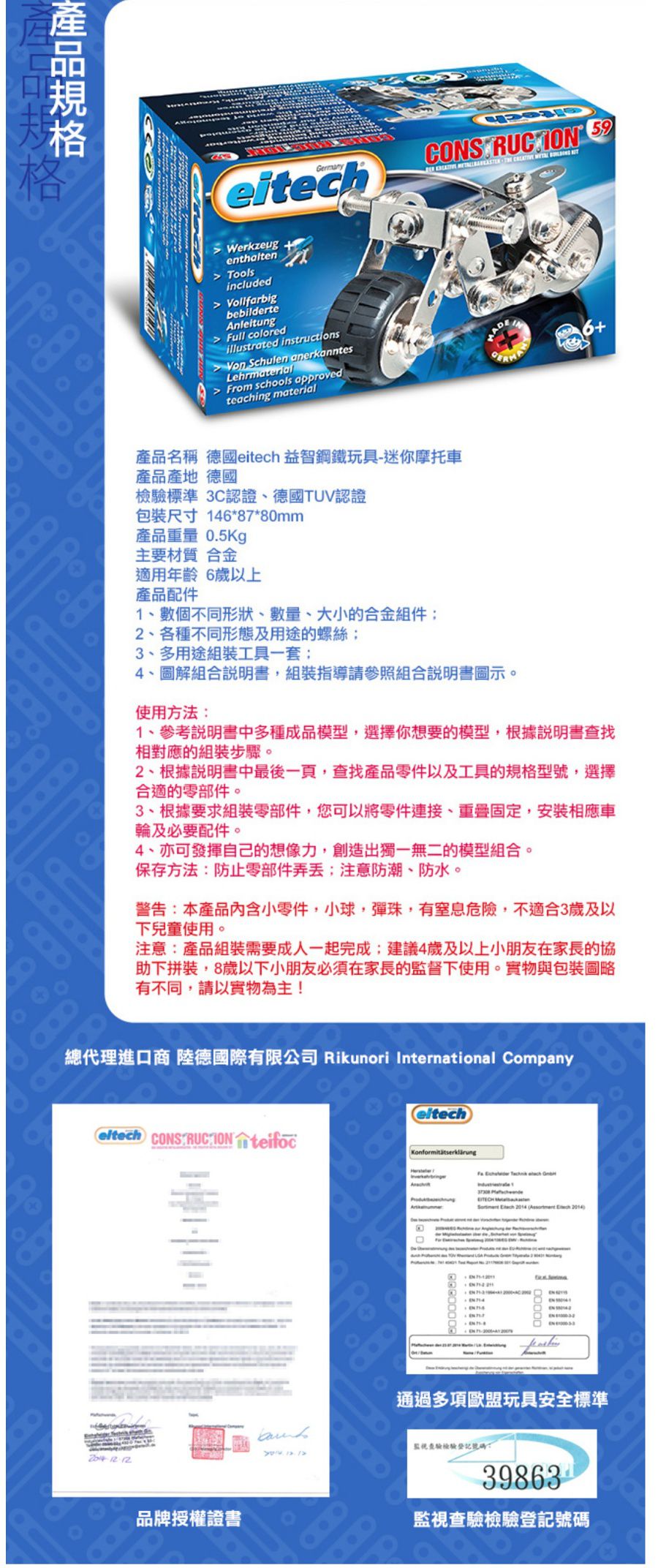 德國 eitech - 益智鋼鐵玩具-迷你摩托車 C59