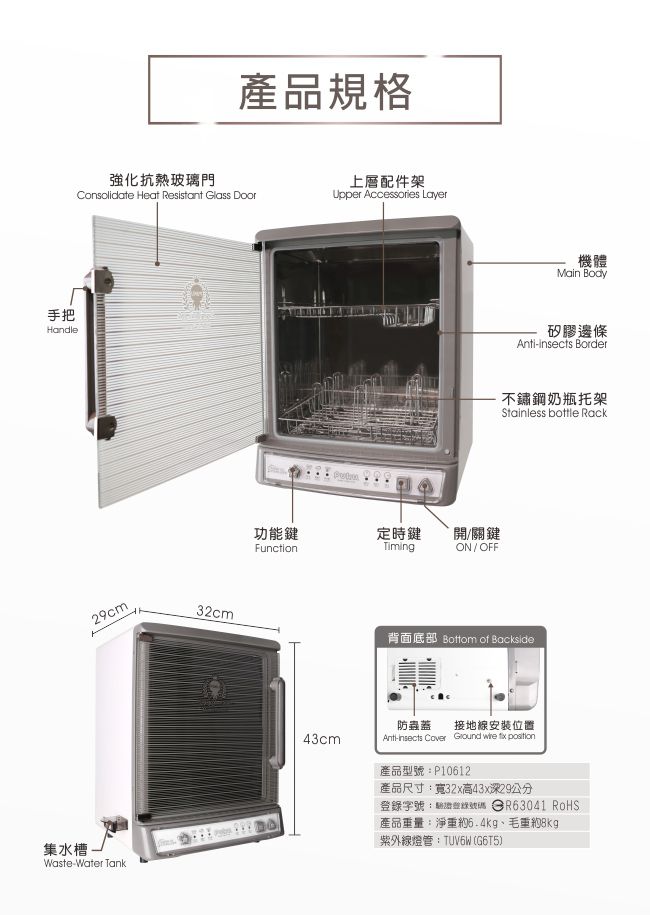 品名:紫外線負離子烘乾殺菌機