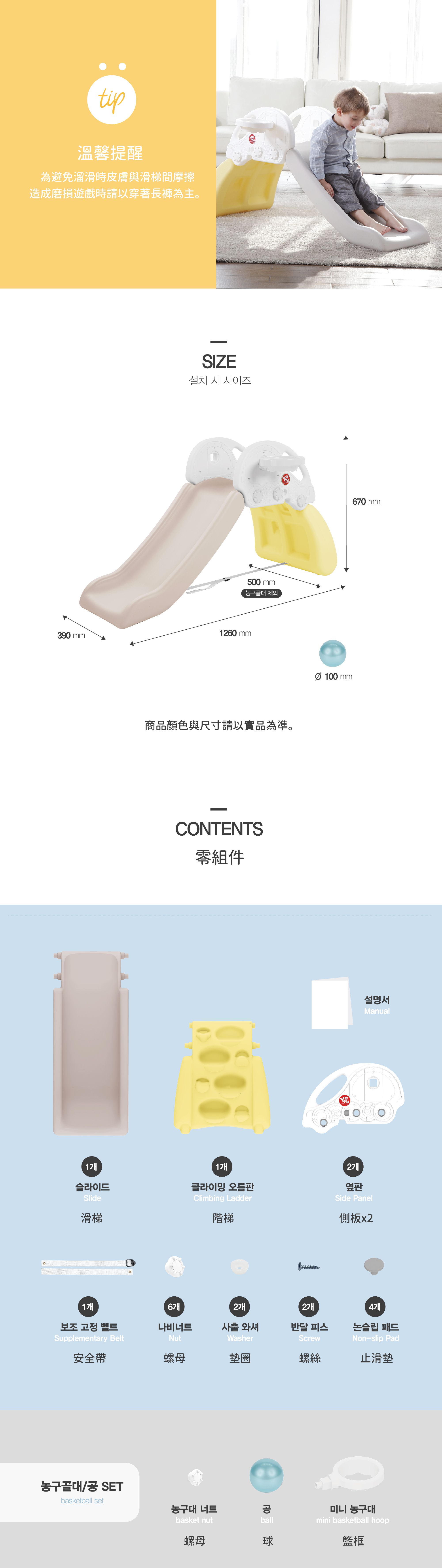 攀岩式階梯的溜滑梯,很適合剛會爬但又站不穩的寶寶。我家的老二從會爬到站著走都很喜歡跟著老大玩此款溜滑梯。尤其在疫情緊張不敢帶孩子出門時,或是剛好孩子生病不能外出時,溜滑梯算是可以滿足孩子們的好方式之一!(使用10個月的心得)