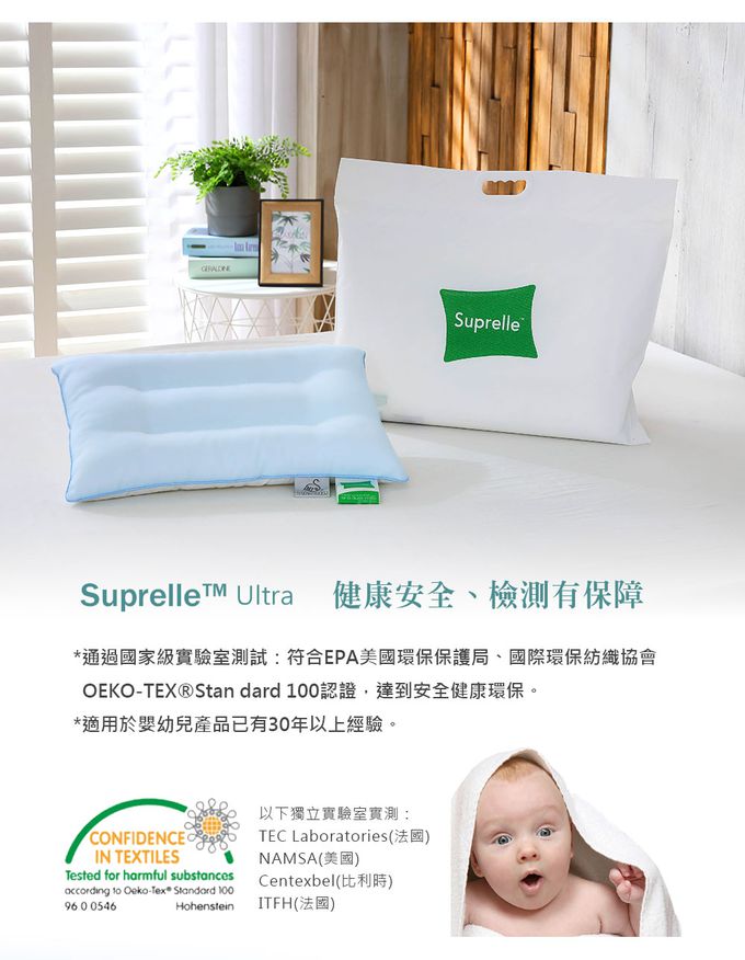 EPA美國環境保護局、國際環保紡織協會OEKO-TEX Standard 100認證,是嬰幼兒也能安心使用的產品喔!![鴻宇 HongYew - 德國防螨抗菌兒童水洗枕 (雙入)-34x52x7cm]()
