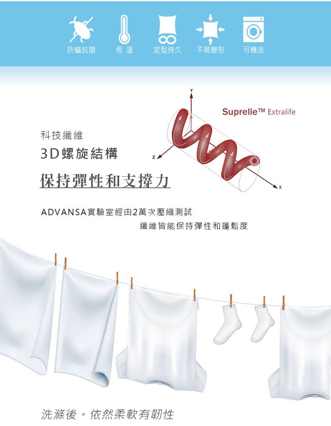 最厲害的是纖維能夠完全吸附水分、達到100%完全浸透!這樣洗衣機洗時才能讓水真的帶走纖維上的髒污、塵蟎!