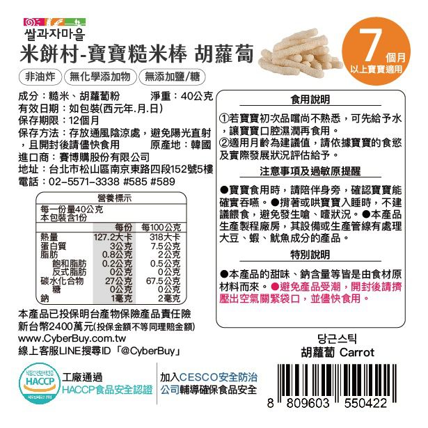 吃出健康的點心!使用韓國稻米與糙米,添加蔬菜與水果,讓寶寶在快樂的點心時間補充營養。