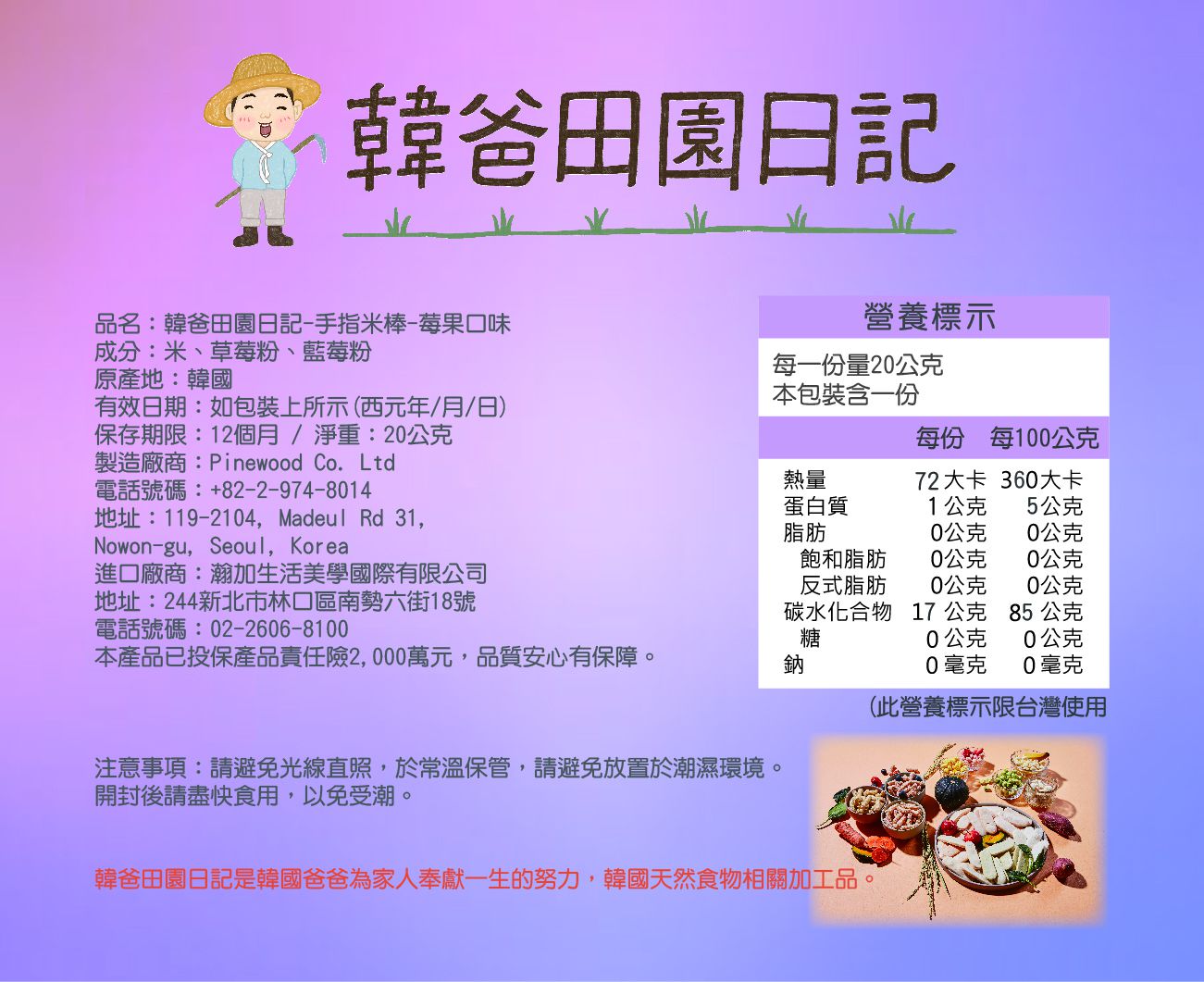 韓爸田園日記 - 手指米棒-莓果口味(6個月以上)-1包/20公克