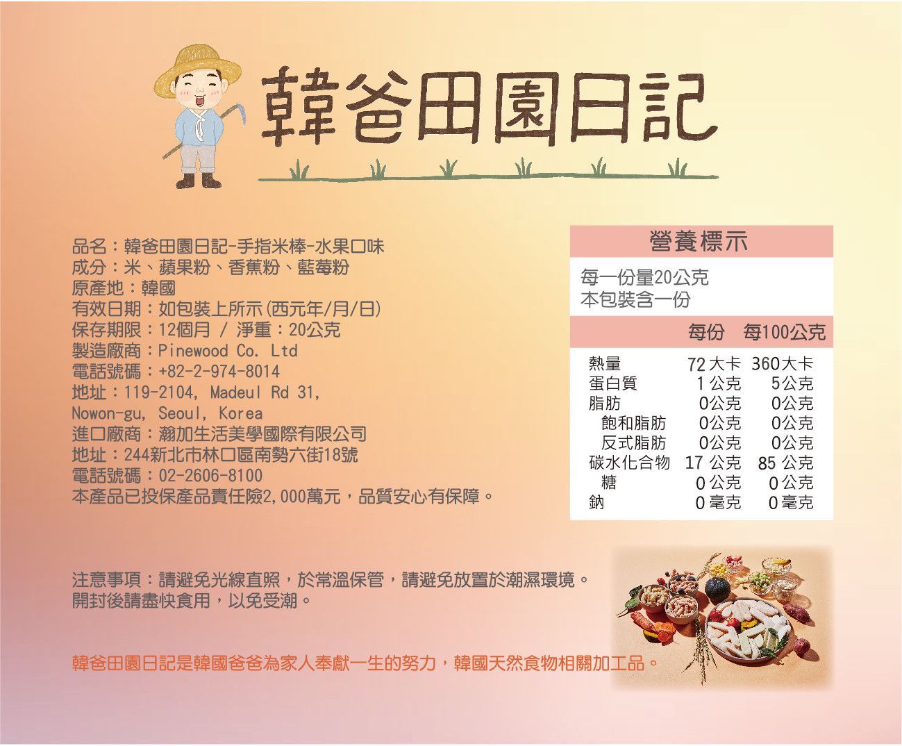 韓爸田園日記 - 手指米棒-水果口味(6個月以上)-1包/20公克