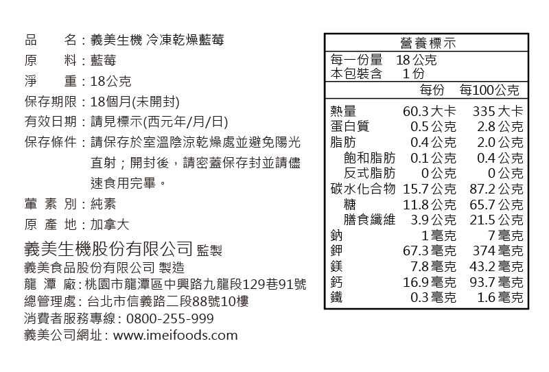 規格:草莓10g/袋(增量為13g);藍莓15g/袋(增量為18g);田園蔬果18g/夾鏈袋