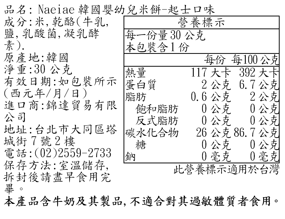 韓國的人氣米餅,在 2016、2017 年連續兩年獲得產品滿意度第一名!韓國 Naver 網路還有 8 萬多名媽媽真心推薦喔!(*´∀`)~♥ 天然的米餅保證七大無添加 ✔無添加麵粉 ✔無添加防腐劑 ✔無添加全脂奶粉 ✔無添加人工甘味劑 ✔無添加化學添加物 ✔無添加化學色素 ✔無添加任何油