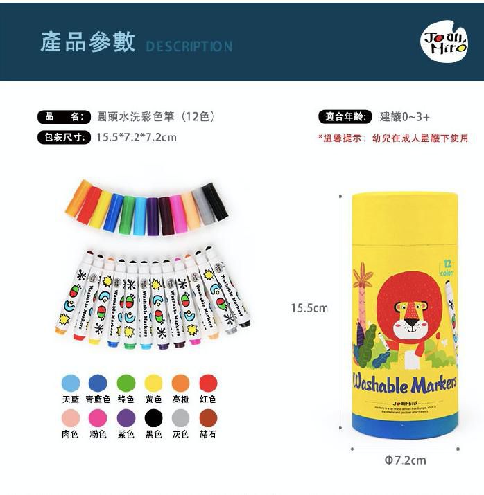 JoanMiro - 幼兒圓頭可水洗彩色筆-12色