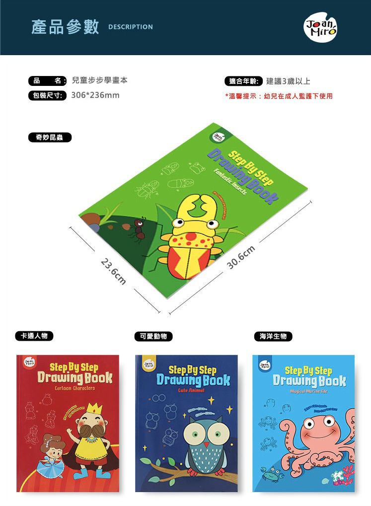 JoanMiro - 【畫好畫滿學畫本體驗B組】步步學畫本-海洋生物+卡通人物+兒童絲滑蠟筆(6支)(無外盒顏色隨機不重複)