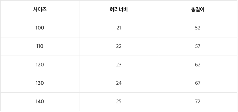 尺寸表由左至右分別為:尺寸、腰圍、總長