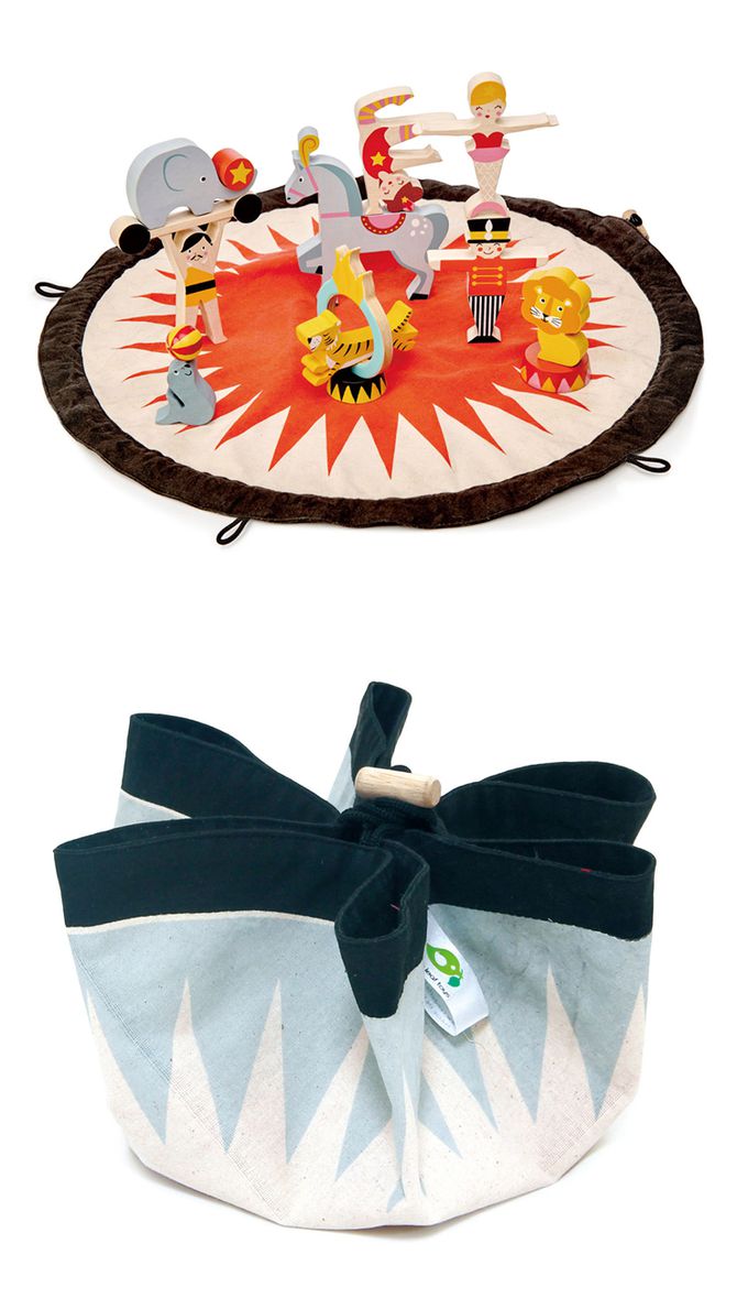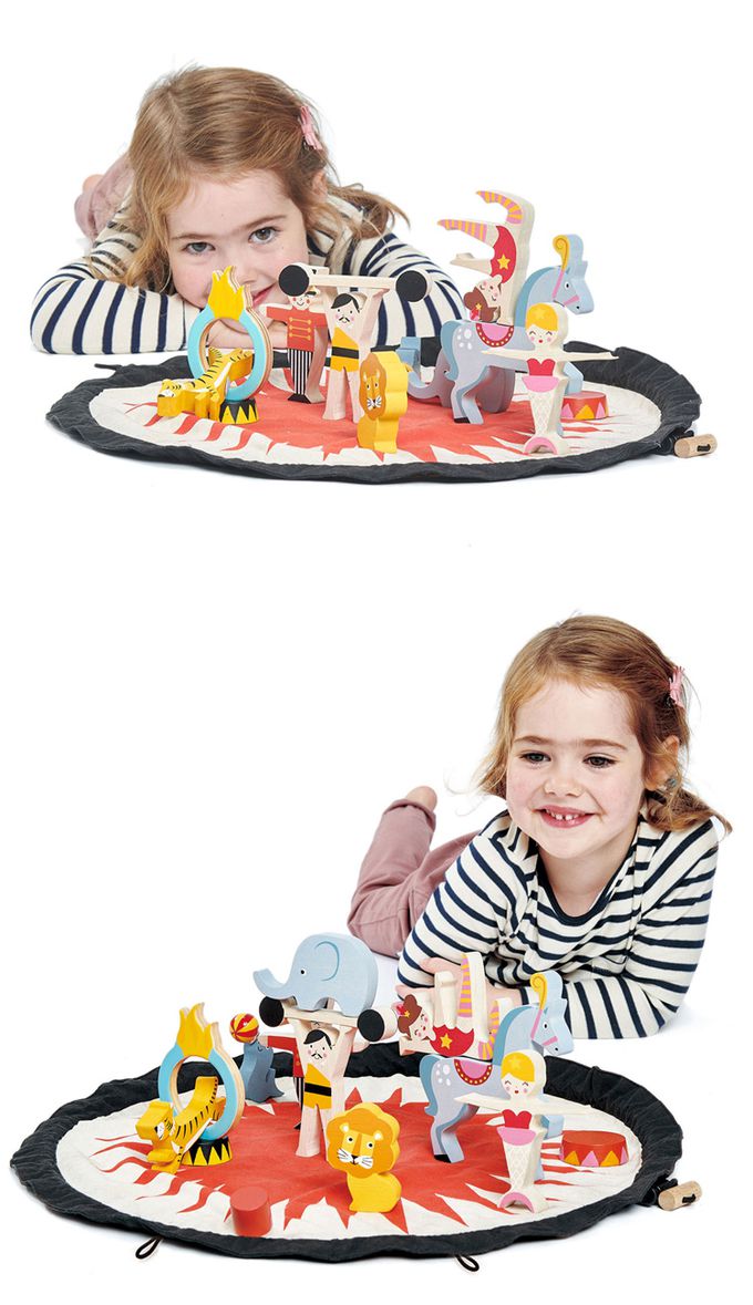 ★ 內附15個馬戲團特色積木,以及直徑45公分的圓形帆布遊戲墊。