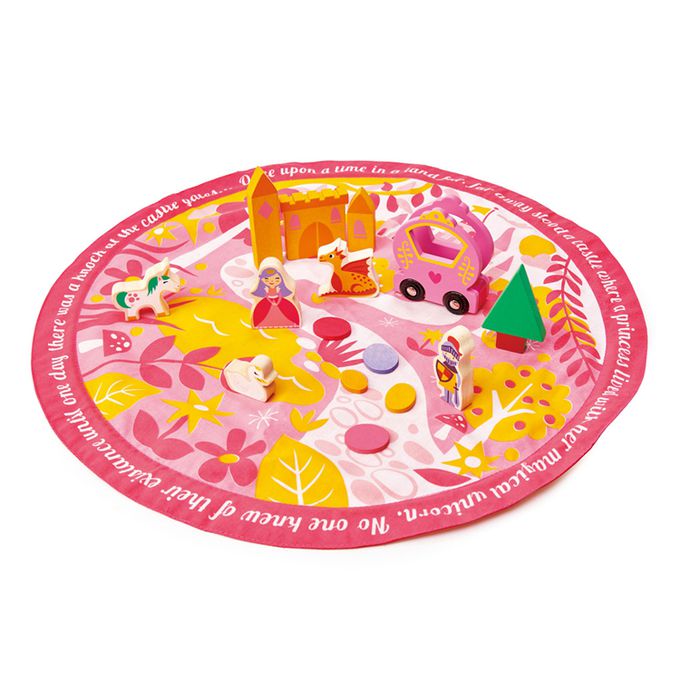 ★ 內附15個童話故事特色積木,以及直徑45公分的圓形棉布遊戲墊。