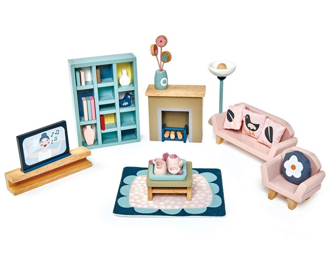 ★ 內含豐富的起居室配件,有:電視、書架、沙發等,還有精緻的茶杯組,提供多樣化的選擇。