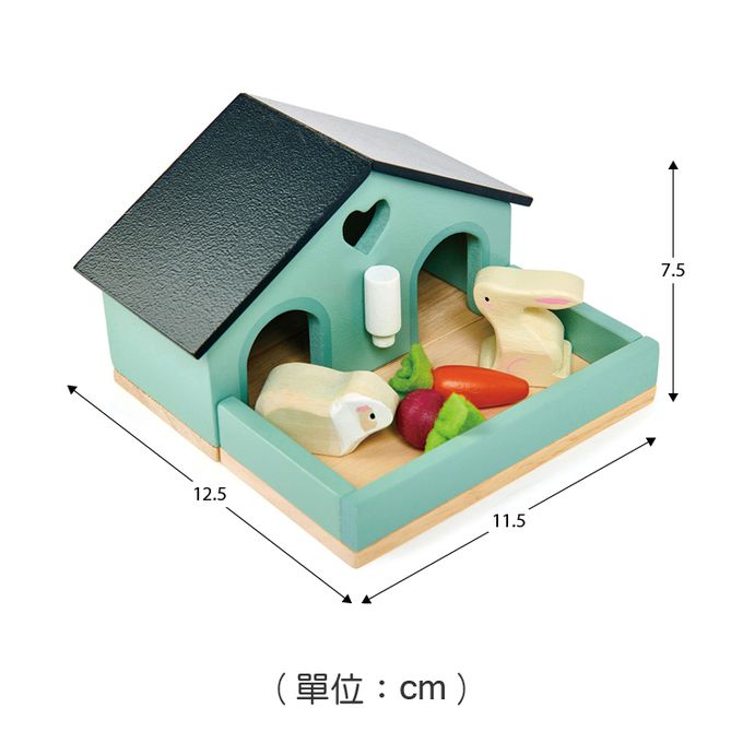 豪華的兔子和天竺鼠圈舍,配有水瓶、胡蘿蔔和櫻桃蘿蔔。適用於所有木製娃娃屋,比例為 1:12。