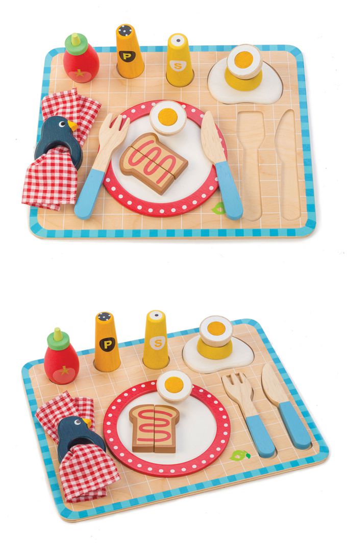 這套組合擁有所有美味的早餐食材,是向孩子展示健康均衡飲食重要性的絕佳方式。托盤的尺寸設計非常適合孩子小巧的手,可將餐點直接送到桌上。