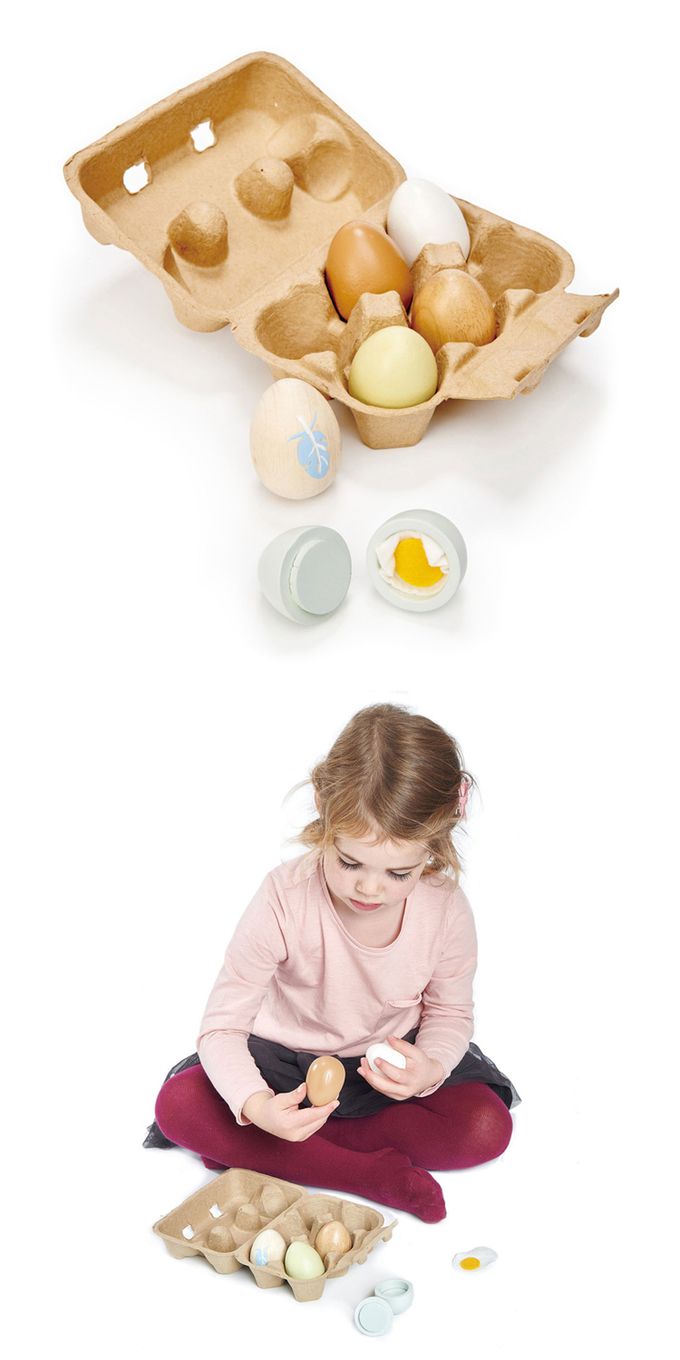 ★ 一個雞蛋盒裝滿了六個木製的雞蛋,細緻仿真,貼近生活。