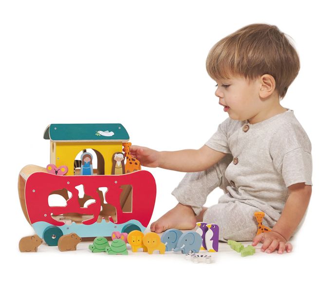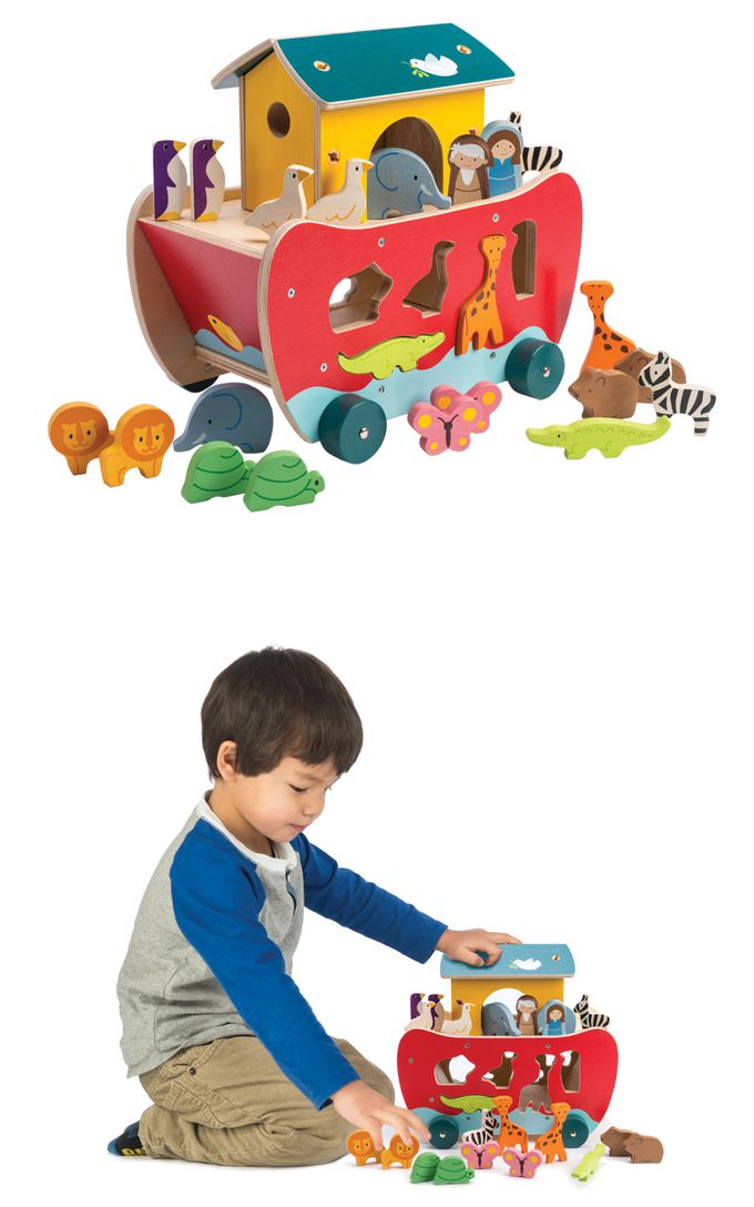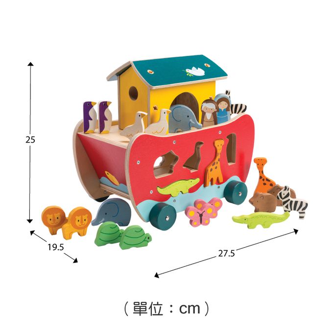 諾亞方舟有可拿開/可拿起的屋頂和可升起的側板,讓小手輕鬆取出厚實的動物積木。它的獨特之處在於擁有輪子可以滑行移動!