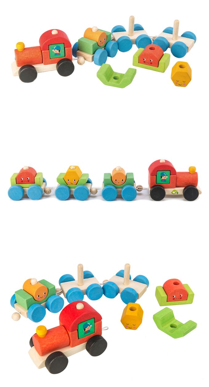 ★ 火車頭加上三個車廂,利用棉繩環扣,孩子可自行排序。