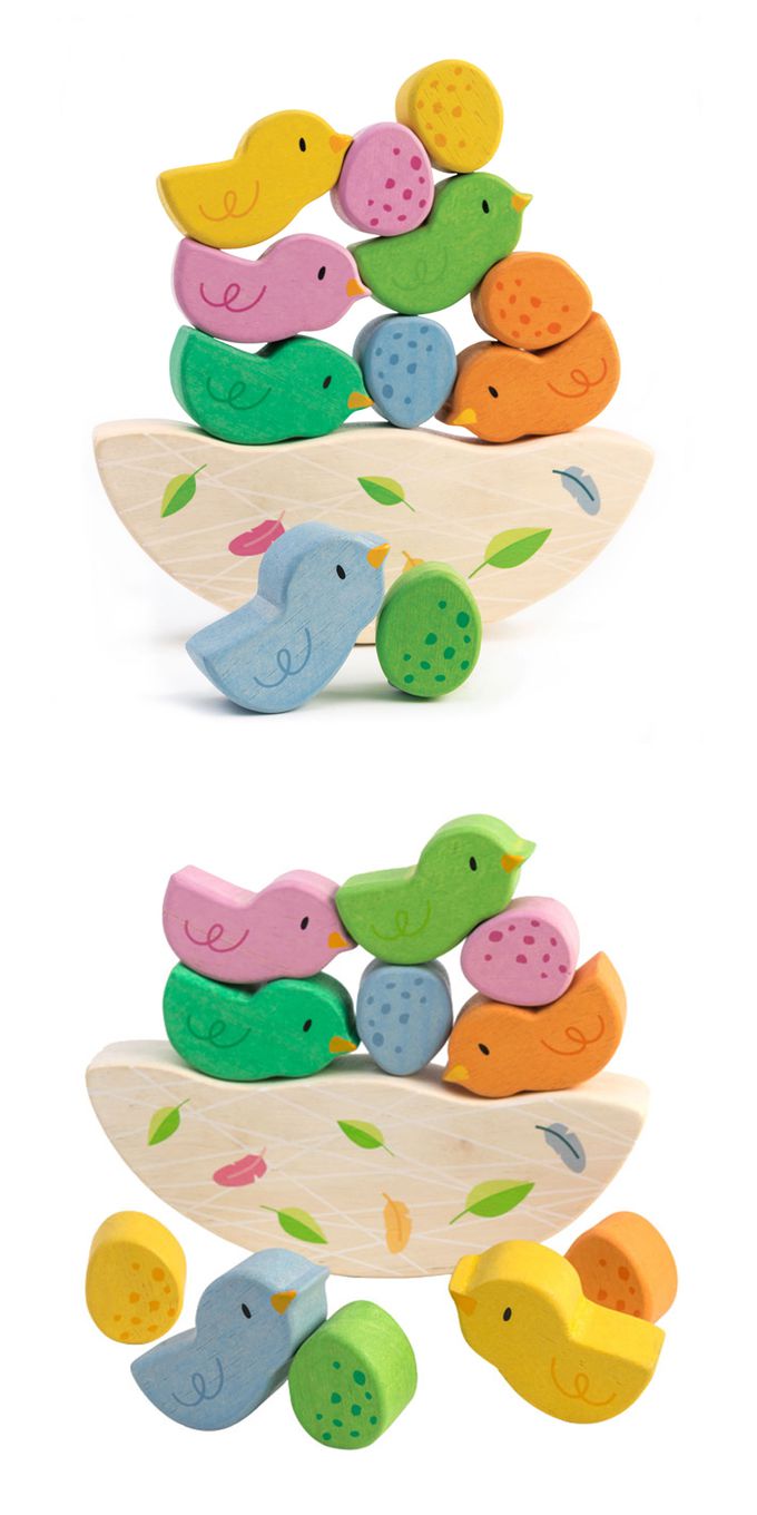挑戰您的孩子,將所有的小鳥和鳥蛋都堆在鳥巢上!有助於培養邏輯、平衡和構建技能。