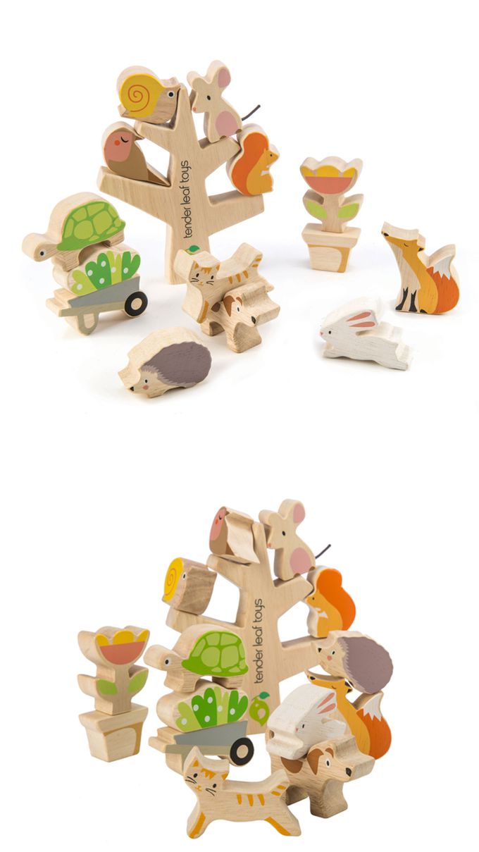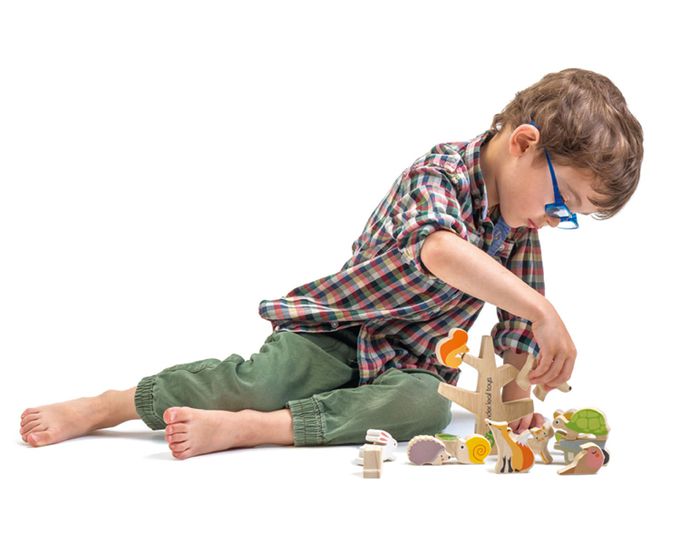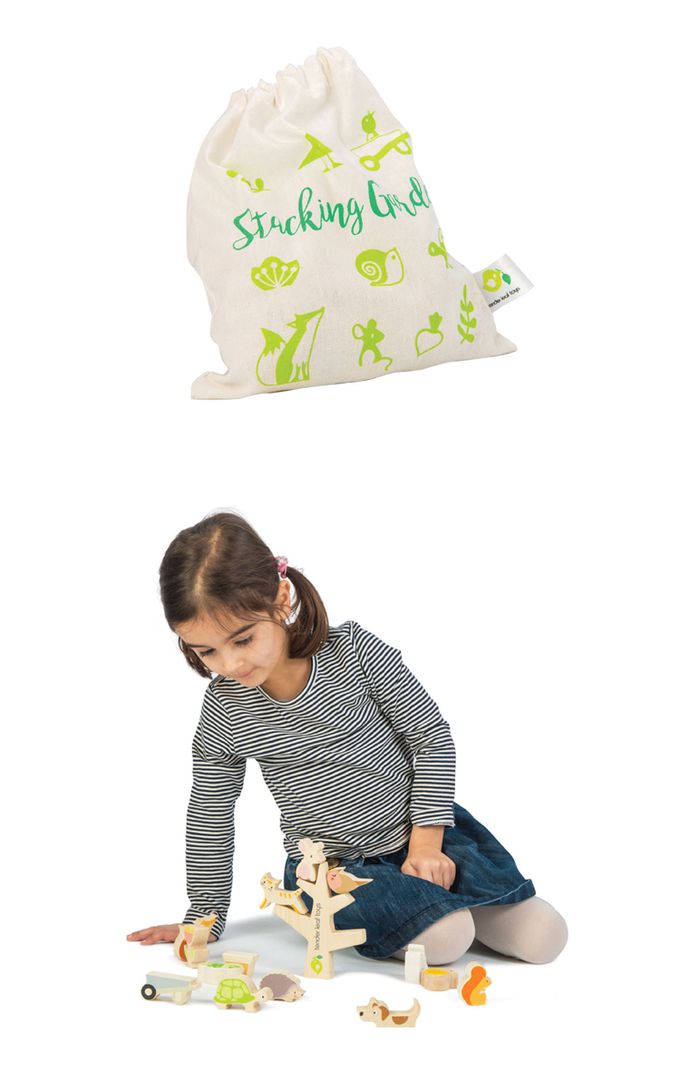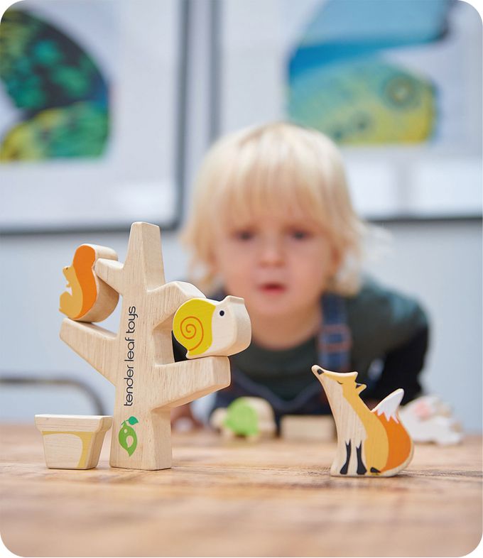 原木打造的動物森林疊疊樂,設計優雅、質感精美,讓孩子在遊戲中培養美學能力。透過樹木、花盆、推車及十款動物積木,訓練小手肌肉及體驗平衡原理,是一款可隨身攜帶的簡易耐玩遊戲。