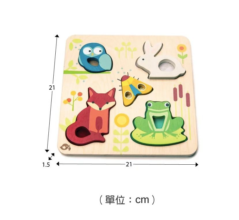 ★ 積木底下各設有不同材質,模仿白兔觸感的短毛,而金片紋路則是類似蟬的粗糙翅膀,都能大大提升觸覺感知。