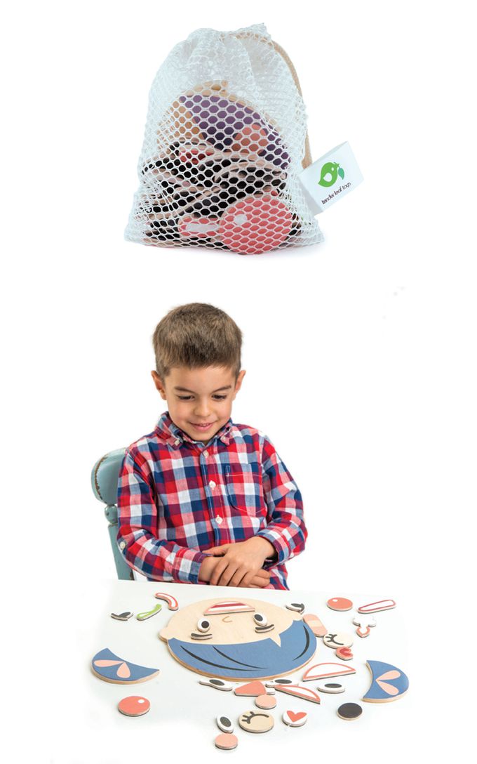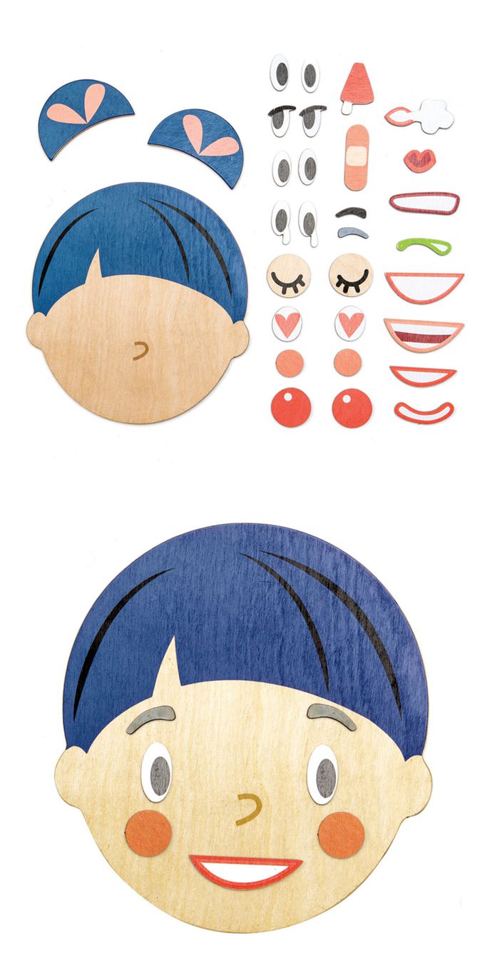 ★ 內含1個木製的臉形底座、2個髮髻和28個磁性臉部物件。