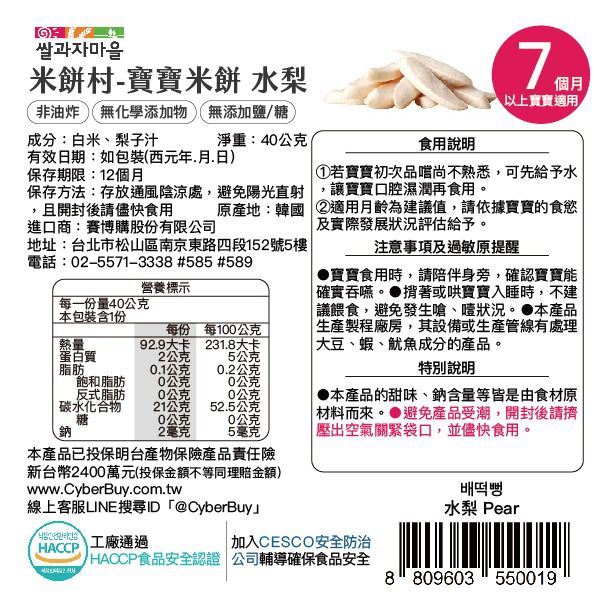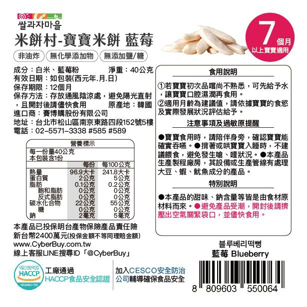 品牌:韓國SSALGWAJA米餅村