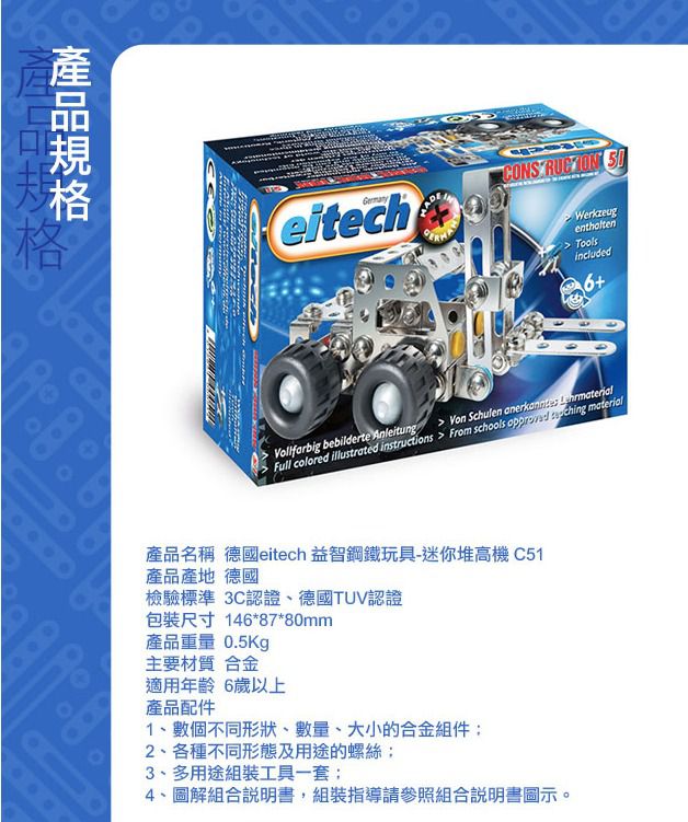 德國 eitech - 益智鋼鐵玩具-迷你堆高機 C51