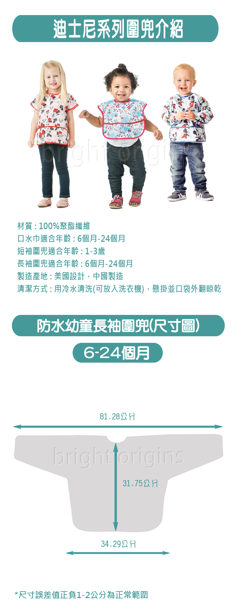 美國 Bumkins - 防水長袖圍兜兜(1入)-米奇
