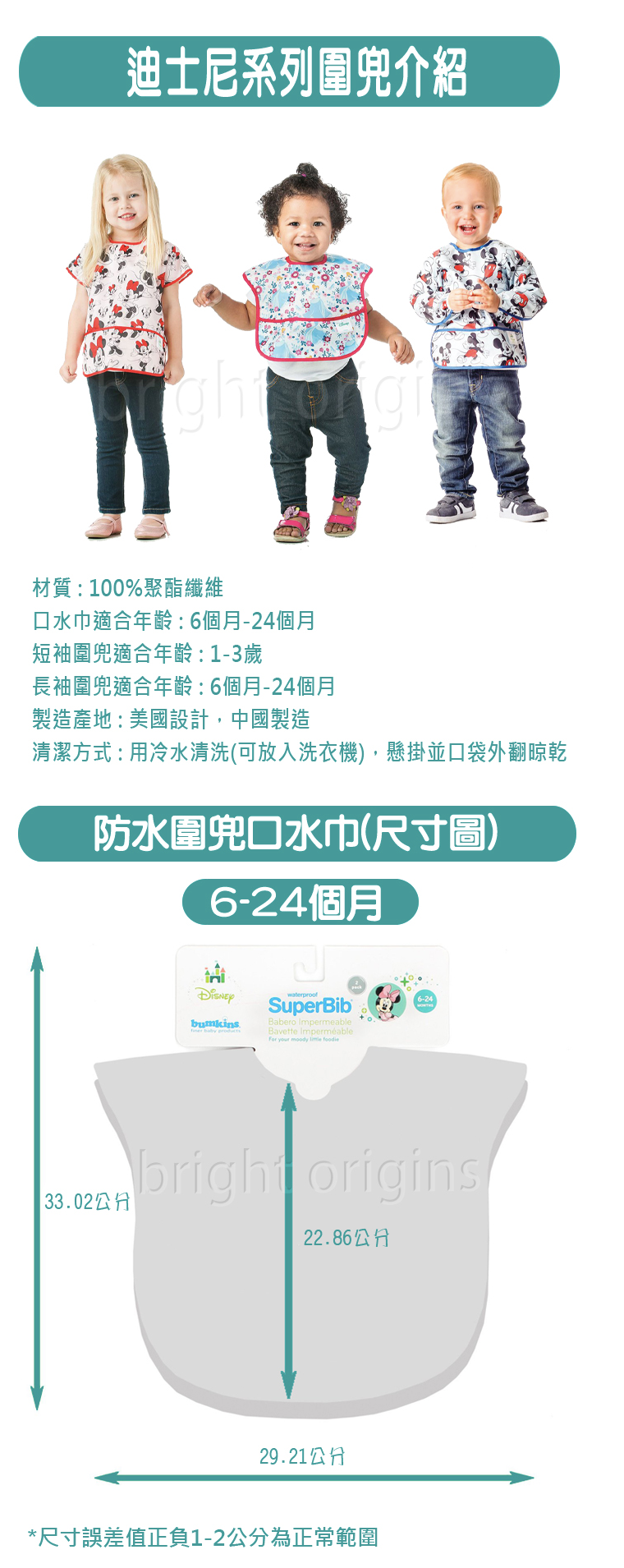 美國 Bumkins - 防水圍兜兜(二件組)-粉米妮