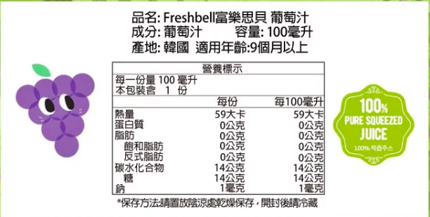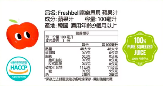蘋果汁/葡萄汁/桔梗梨汁/蘋果高麗菜 適用年齡:9個月以上