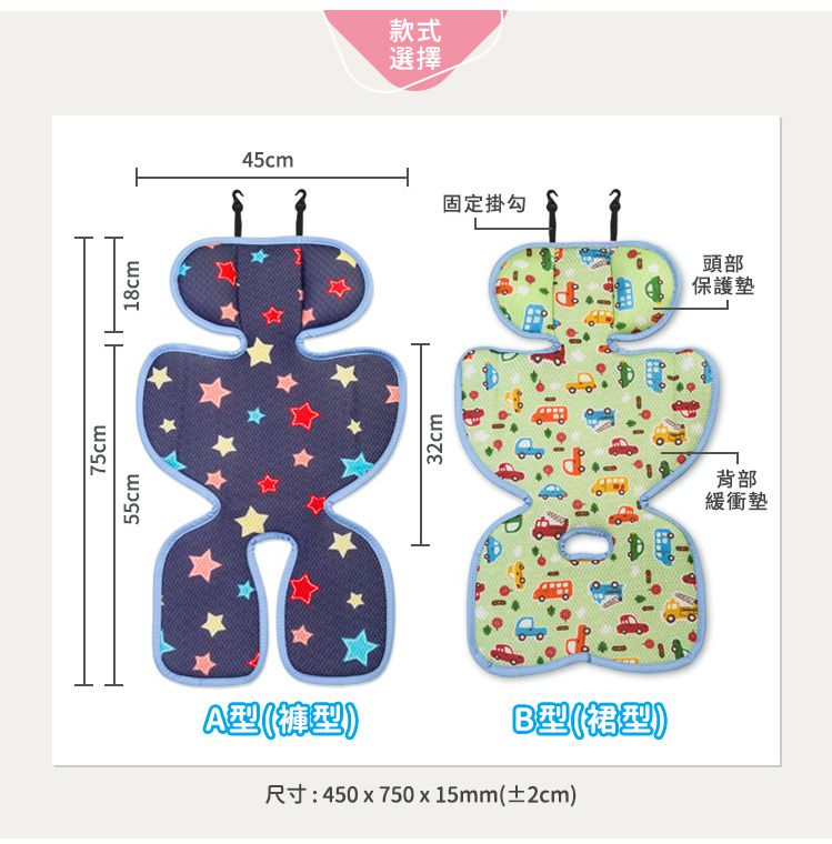 透氣舒適,買了兩個,藍色跟粉紅色的,讓小孩坐推車可以不會那麼悶熱。
