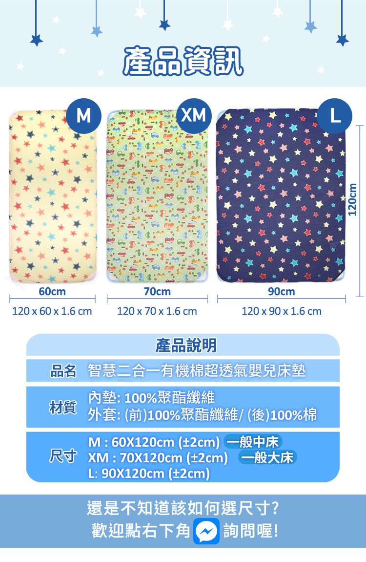 品名:智慧二合一有機棉超透氣排汗嬰兒床墊