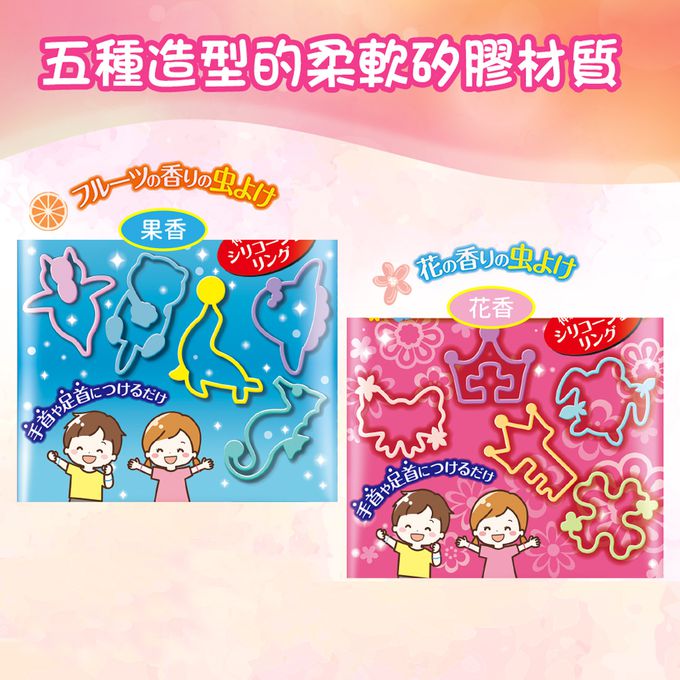 日本小孩界超夯的【日本金鳥 多造型驅蚊蟲環】豐富的動物造型,搭配花香、果香等天然精油,可以驅蚊12小時喔~  手環使用彈性的矽膠材質,媽咪、孩子都可以使用,而且碰到水後依舊有效,玩水也可以戴著!
