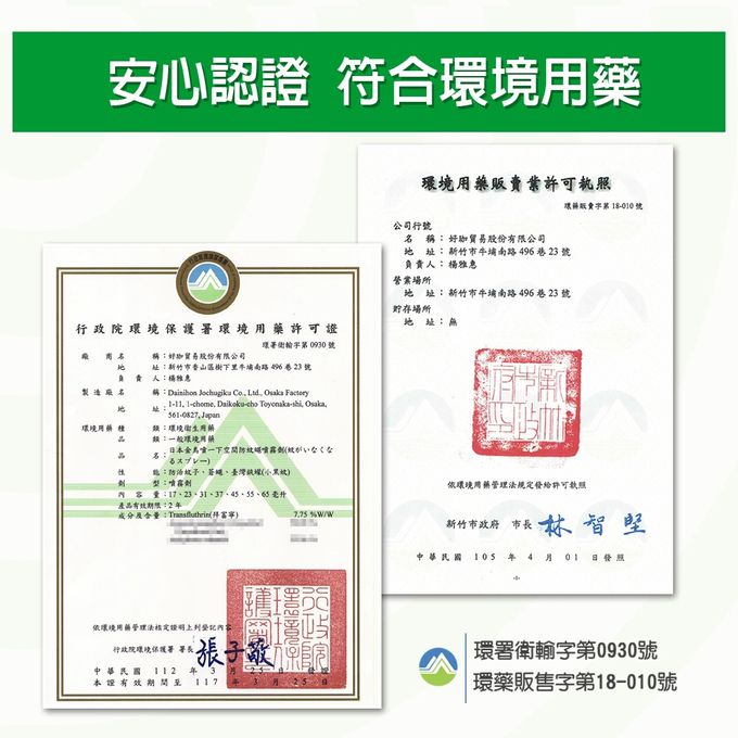 ✓環藥販賣字第18-010號<好珈貿易股份有限公司>