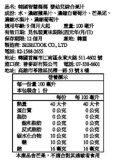 BEBECOOK寶膳 嬰幼兒綜合果汁-100ml/包