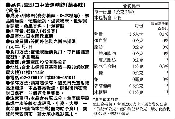 雪印的清涼糖含有木糖醇以及護齒配方,一歲半之後的寶寶以及大人,都可以適量補充清涼糖錠唷!