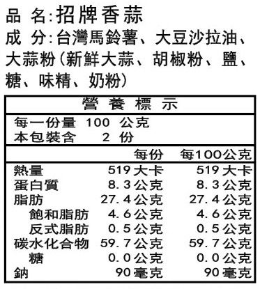 ✓ 經典香蒜(葷,厚切波浪):五星飯店指定香酥蒜片研磨成粉,濃郁的台灣大蒜香氣搭配新鮮海鹽、胡椒粉增添風味,30年屹立不搖的經典招牌口味。