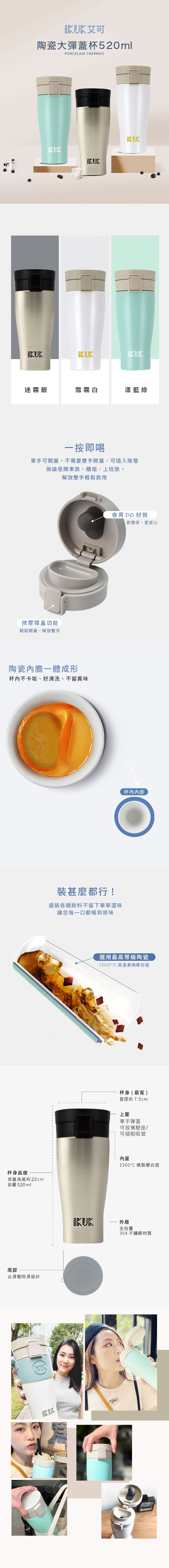 真空雙層內陶瓷保溫杯 大彈蓋-漾藍綠-520ML